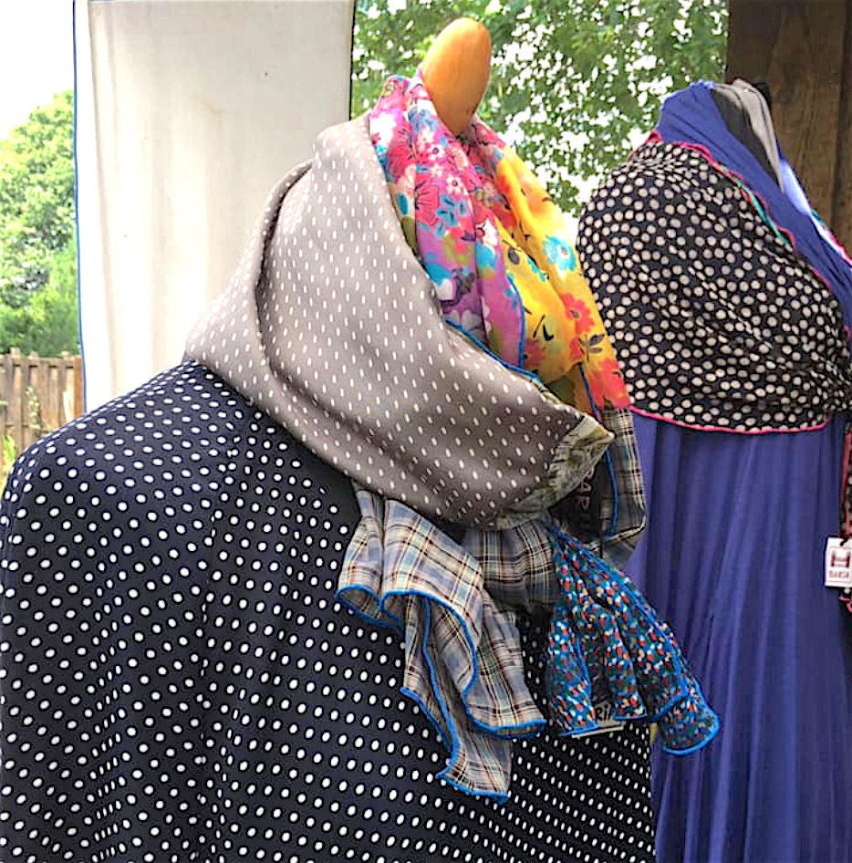 Il y a Dany, la mère, styliste, qui propose vêtements féminins et accessoires de mode. Ses créations osent le mélange des matières, mais aussi des motifs, pour des modèles – souvent uniques- de chèches, étoles, foulards, écharpes… Coton, polaire, soie et jersey s’y côtoient, dans un vent de liberté qui unit pois, carreaux, fleurs, pour le meilleur.
