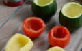 • Couper le chapeau de la courgette, ou la couper en 2 si c’est une courgette normale ; la vider à l’aide d’une cuillère parisienne ou une cuillère à café.