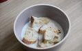 • Prendre un petit bol et mettre les deux tranches de pain rassis, ajouter du lait à hauteur puis laisser le pain s’imbiber.