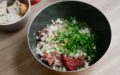 • Ciseler l’oignon, l’ail et le persil ; les rajouter dans le bol avec la viande.