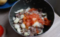 • Faire de même avec la tomate et les pommes de terre ; il ne faut pas faire de trou dans le fond du légume, mais juste creuser pour pouvoir mettre la farce.