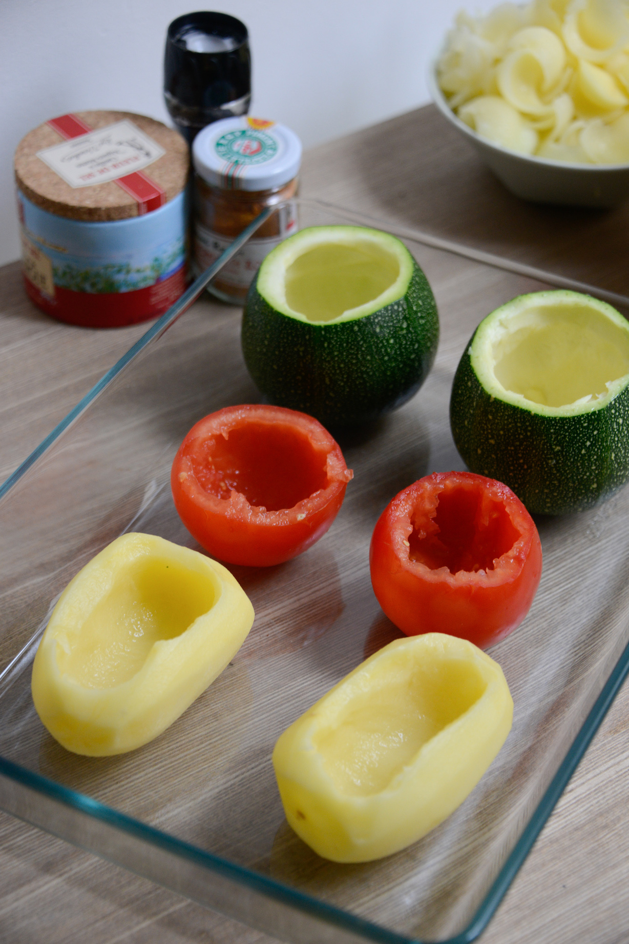 • Faire de même avec la tomate et les pommes de terre ; il ne faut pas faire de trou dans le fond du légume, mais juste creuser pour pouvoir mettre la farce.